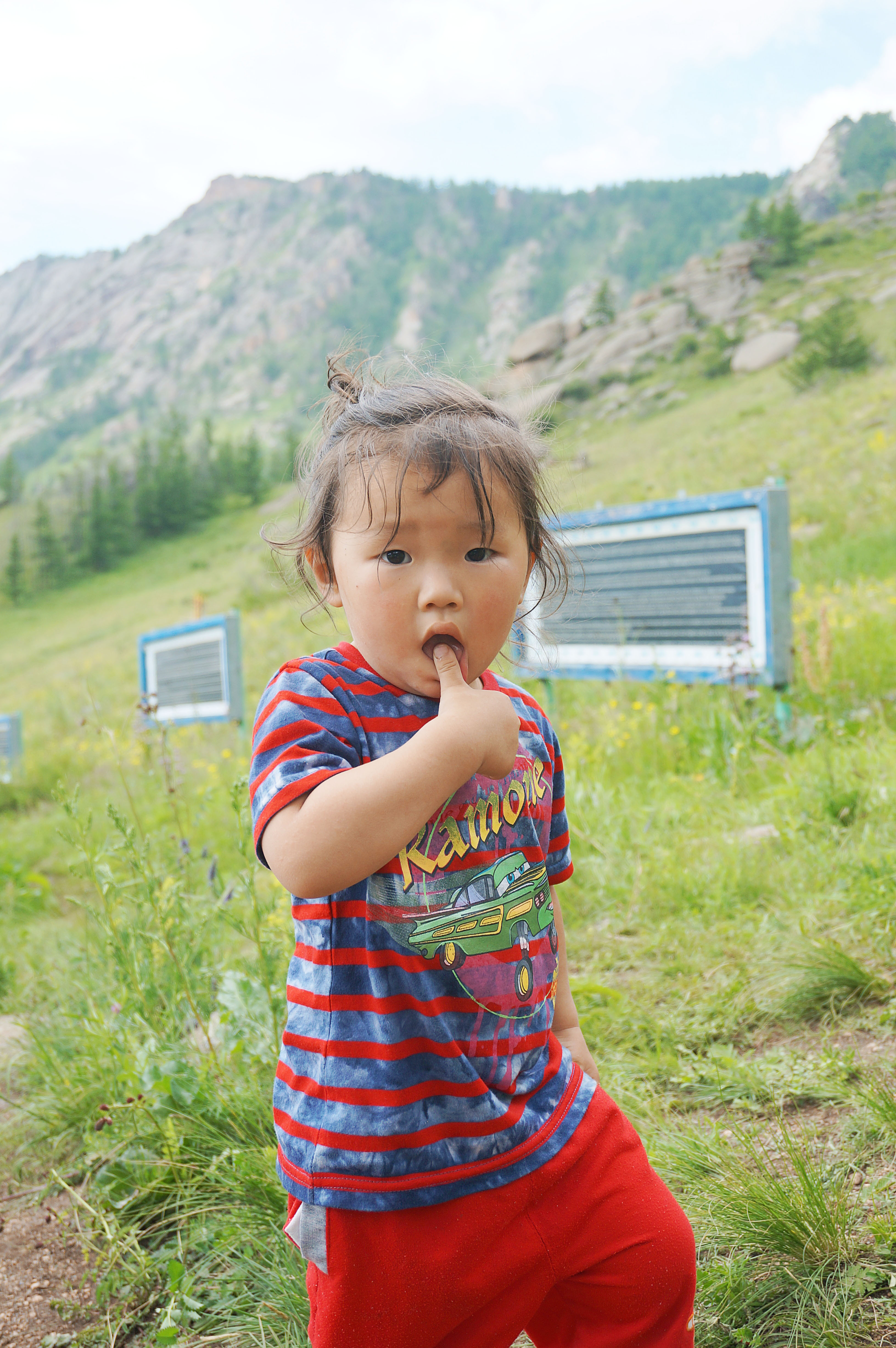 The Mongolians are a really friendly bunch of people. This adorable girl kept turning her head towards us to figure out what sort of language we were speaking and she spontaneously posed for a photo with us.